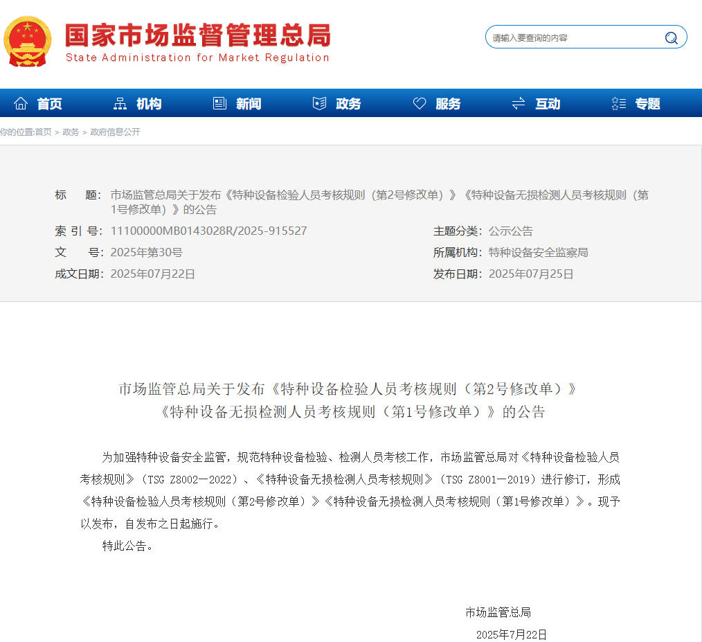 《特種設備檢驗人員考核規則(第2號修改單)》(TSG Z8002—2022)